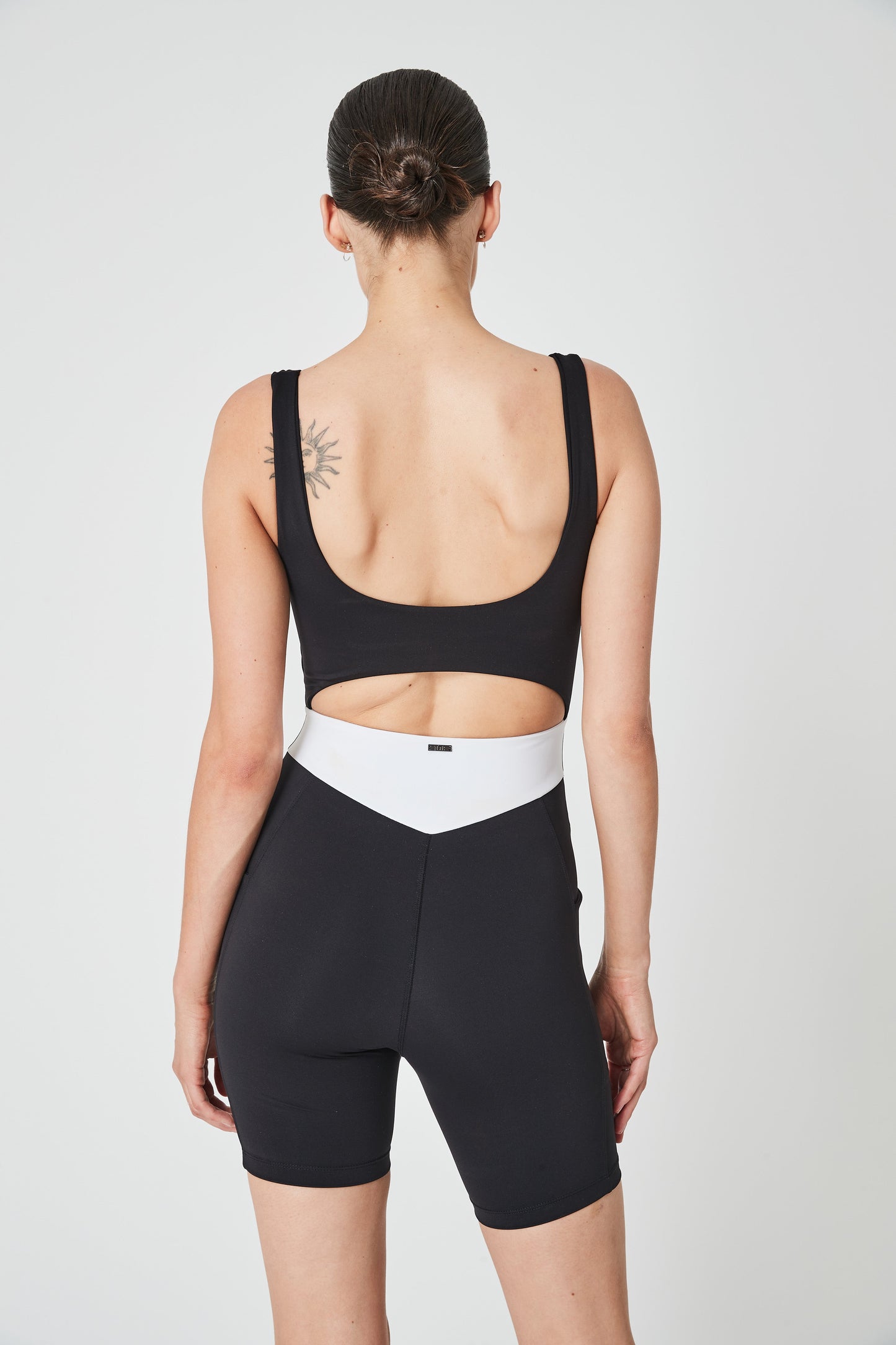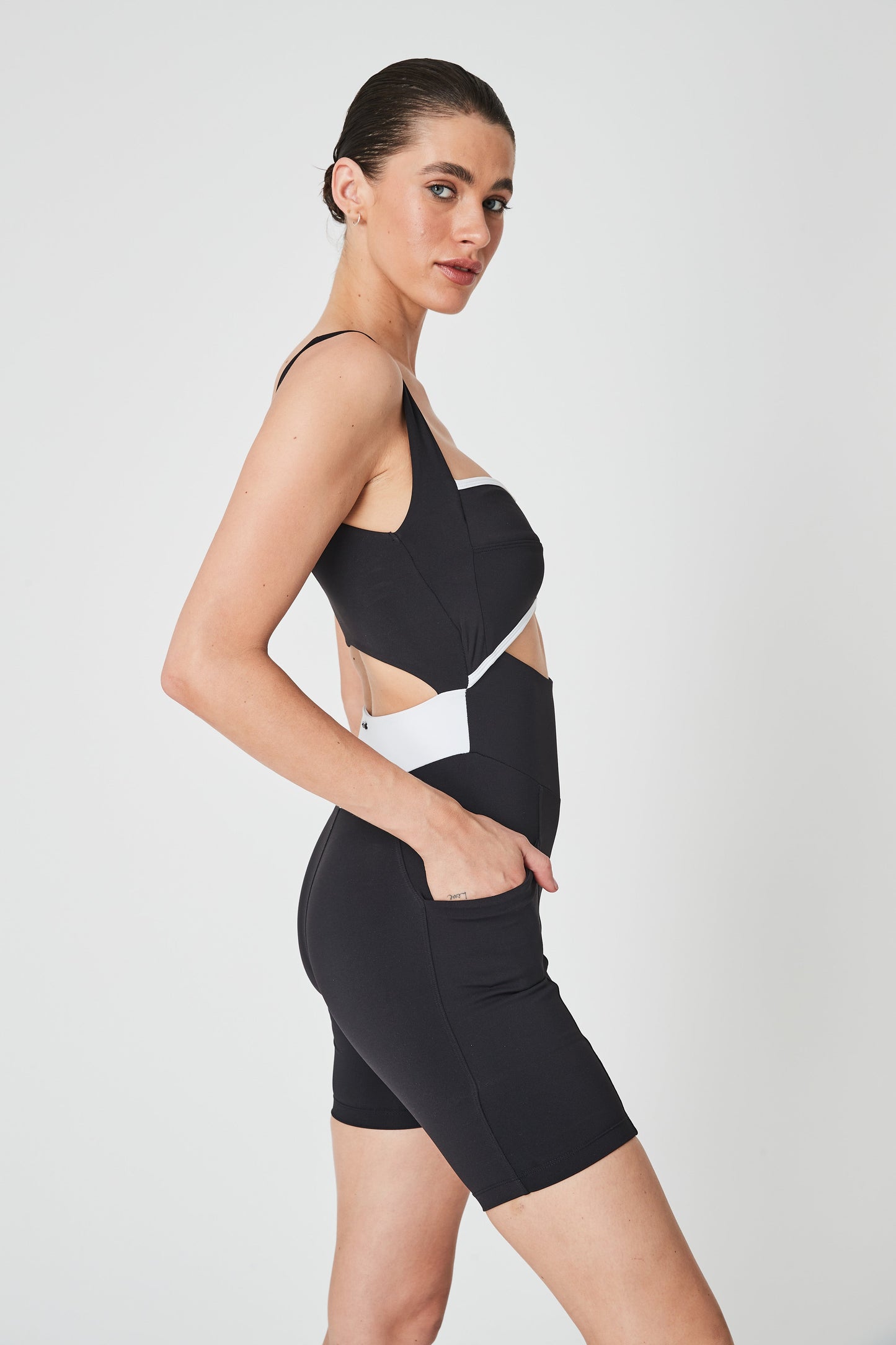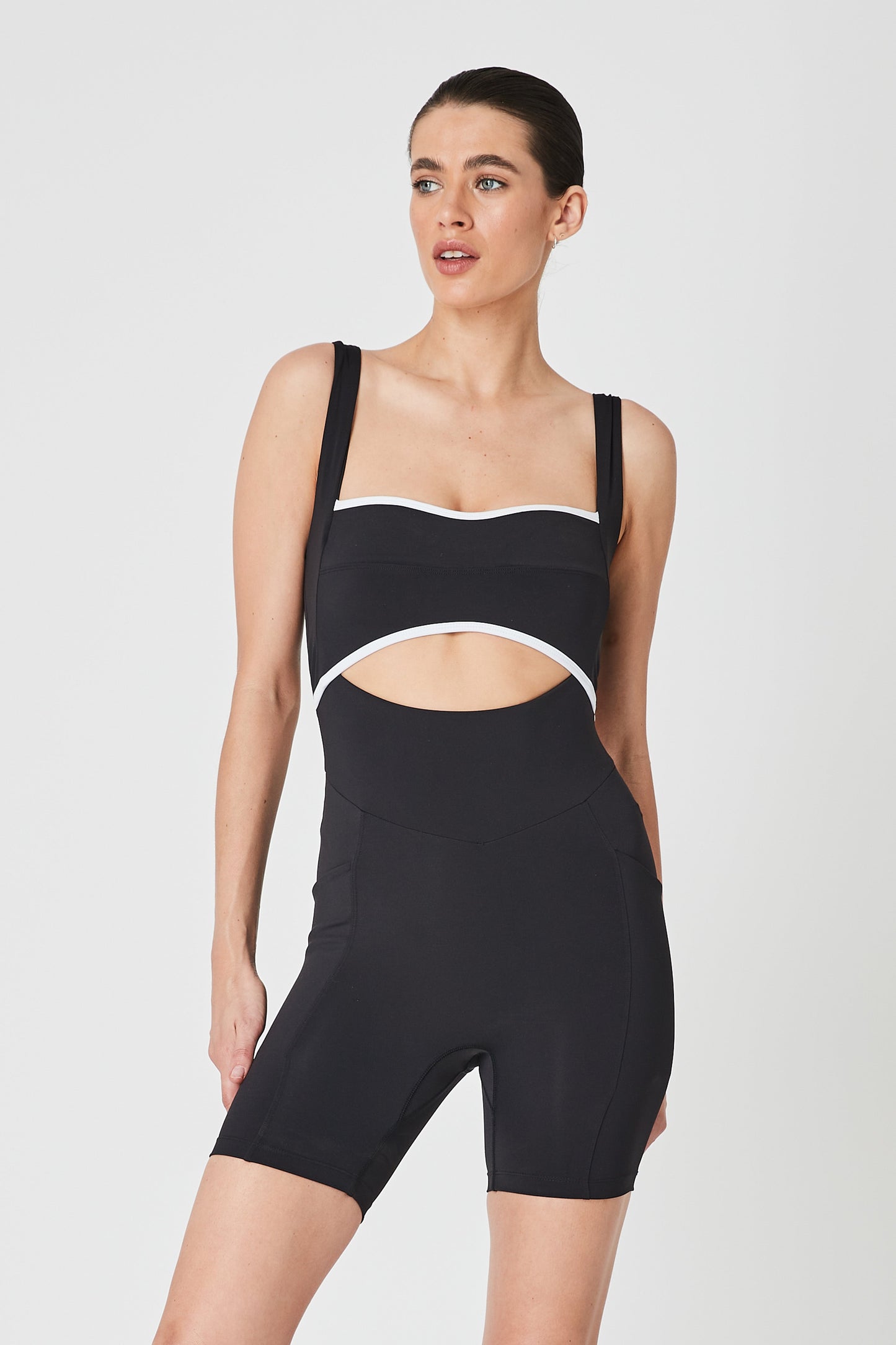 From studio to street, the Capri Cutout Bodysuit is a versatile one-piece that doubles up as an everyday bodysuit, ready for your next workout or on the go. Featuring a curved bandeau neckline, bodice seam tailoring and contrast white binding to frame the décolletage. Finished with an under bust cutout to flatter the midriff and side pockets, this active essential is perfect for pilates and studio workouts.