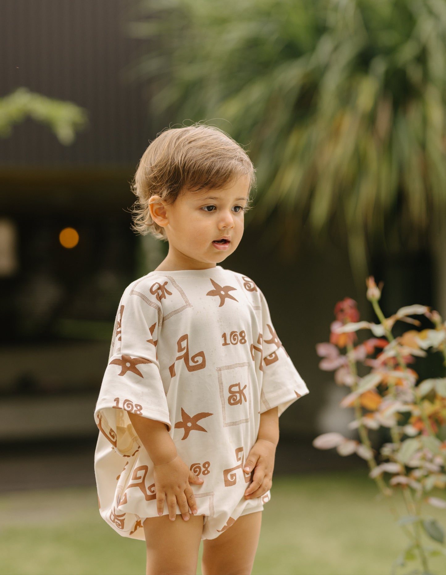 Tiny Tides Oversized T-Shirt Romper – Cream/Mocha