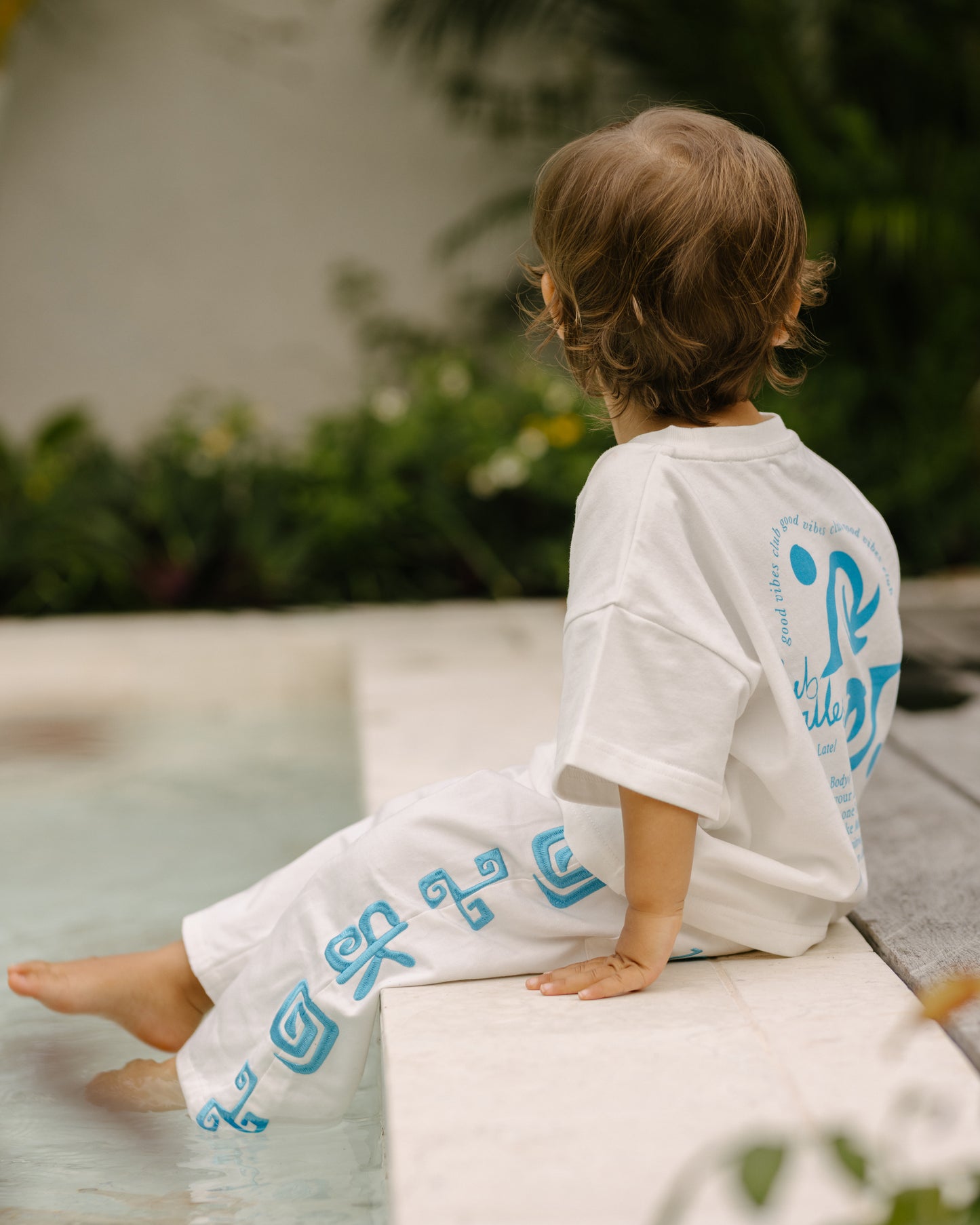 Good Vibes Club Oversized Kids Tee - White/Azure Blue